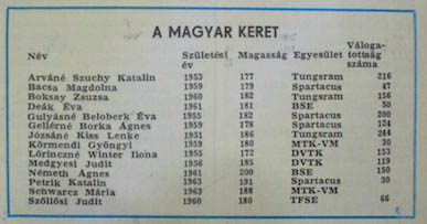 Megjegyzés: kiváló nevelőedző, hosszú évekig a női válogatott edzője